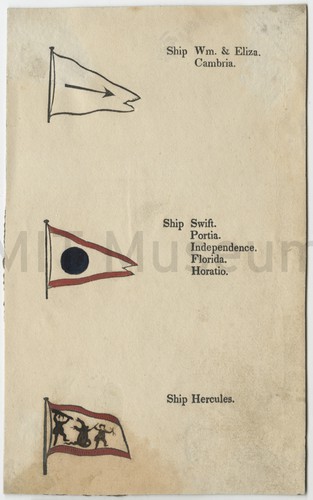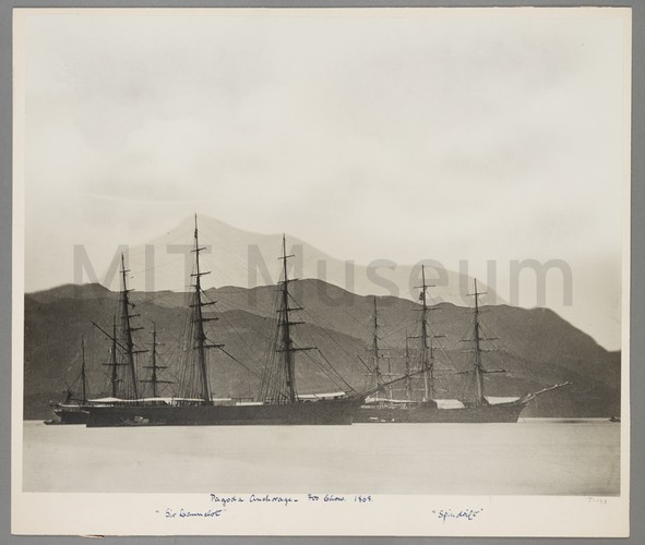 Tinted lithograph ship portrait, side view, of a steamship with two masts, her sails unfurled, at sea. Title and artist attributions printed in lower margin.
