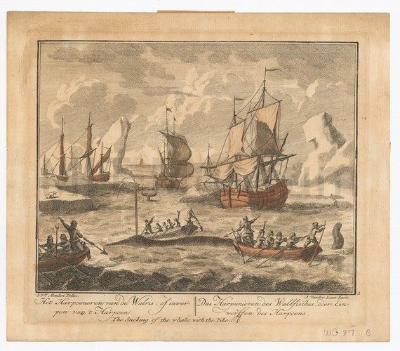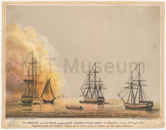 Side view of the brig Porpoise, her sails curling with the force of the wind, sailing a choppy sea with several other vessels in the background. Title and production information in the lower margin.