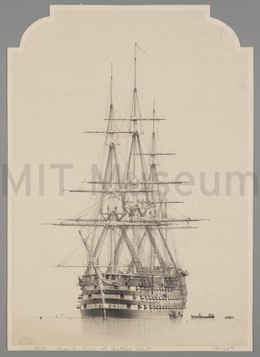 Steamship 'Britannic' arriving into Queenstown Harbor with mail and passengers. A small, single smokestack steamer navigates alongside the stern of the mail steamship. When the 'Britannic' was built, she was the largest ship next to the 'Great Eastern.'