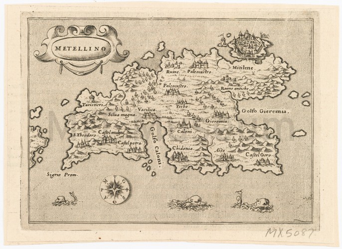 hand-colored copperplate engraved map of Thessaly, Ancient Greece from the publication Grand atlas contenant vue parfaicte description du monde maritime... by Jan Jansson (Amsterdam, Apud Ioannem Janssonium, 1650 ?). Putti, horses, and men flank the sides of the cartouches that contain the title, author, and distance scale. Five vessels and one whale or sea monster decorate the Agean Sea.
