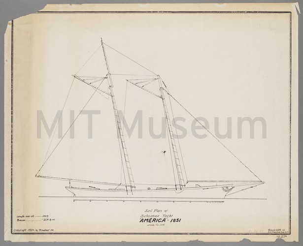 A tinted lithograph of the port-side view of the clipper ship 'Great Republic.' The print is dedicated to Donald McKay, the shipbuilder. She sails with all of her sails full and set. Other clipper ships are on the horizon. The 'Great Republic' was noteworthy as she was the largest wooden clipper ever constructed. On 27 December 1853, a fire broke out and she was burnt to near the waterline ("water's edge"). She was eventually salvaged and rebuilt with reduced masts.