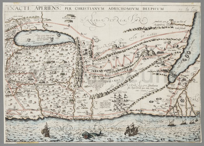 A colored lithograph depicting the renowned cutter yacht 'Surprise' winning her second Grand Challenge Cup. A dressed boat flying the Royal Mersey Yacht Club flag stands for the finish line. A steamboat full of passengers on the right cheer for victory of 'Surprise.' In the background on the left is the recognizable tower of Our Lady and Saint Nicholas Church of England. The yacht 'Cymba,' identified by the manuscript inscription below the image, follows close behind in second place. In the 1856 racing season, the 'Surprise' was the second most decorated prizewinner, with winnings amounting to �405, after the 25-ton cutter 'Glance' with �542.