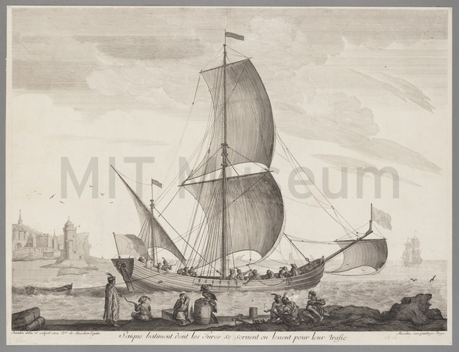 Hand-colored ship portrait of the steamer "Powhatan", side view, with a coast and a sunset in the background. Title, subtitle, and production information in lower margin.