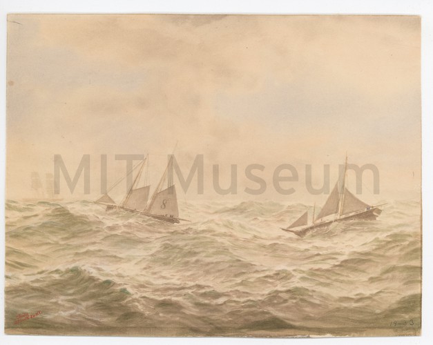 Hand-colored aquatint after a painting by Robert Dodd depicting British and French ships at the Battle of Trafalgar,1805. Plate 4 in a series of prints.