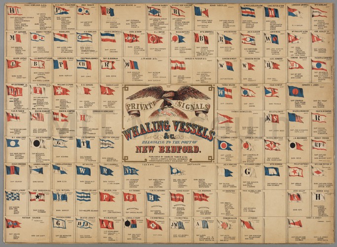 Format- Triptych. Alternate Title: [Catching Whales at Goto and Hirado (in Hizen Province) and Kishu (Kii Province) with a list of types of whales caught]. Includes list of whales caught. Whaling scene off the coast of Japan showing processing of whales that have been hunted. Foremost is a right whale that is being flensed with the use of a massive on-shore winch powered by many large men. Other men are hauling pieces of blubber away on poles. Whale-hunting by small boats continues in the background.