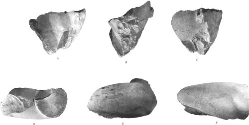 Fragments from the Statue of the Seated King A-C Fragment of the Face: Views of the Left Side, the Front, …