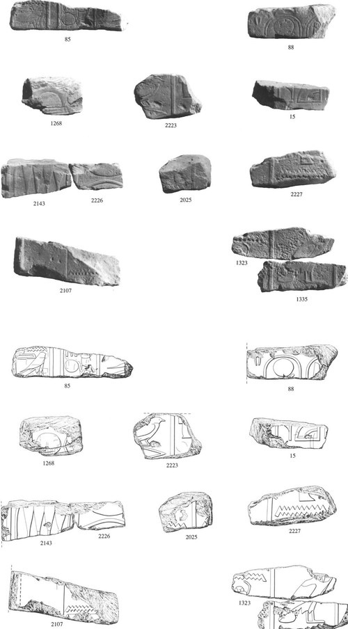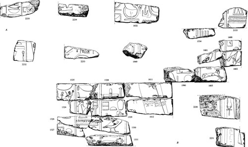 Fragments of the Facade, West Wall, (A) the First and (B) Second … Compare plates 139, 141, and 142.