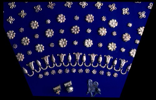 Gold fabric appliqués and ornaments from near Kendirlik Collection of gold ornaments and jewelry, belonging to one or more fabric …