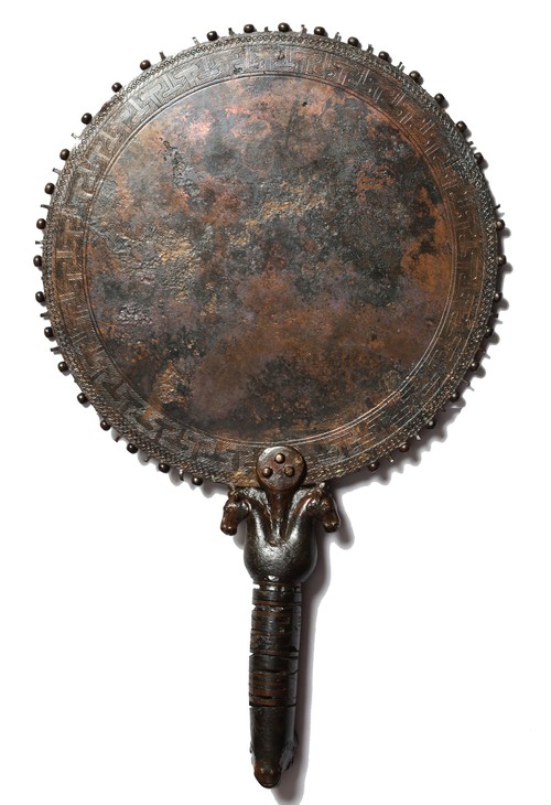 Bronze trefoil-mouthed oinochoe The jug has a trefoil mouth, cylindrical neck, squat spherical body and …