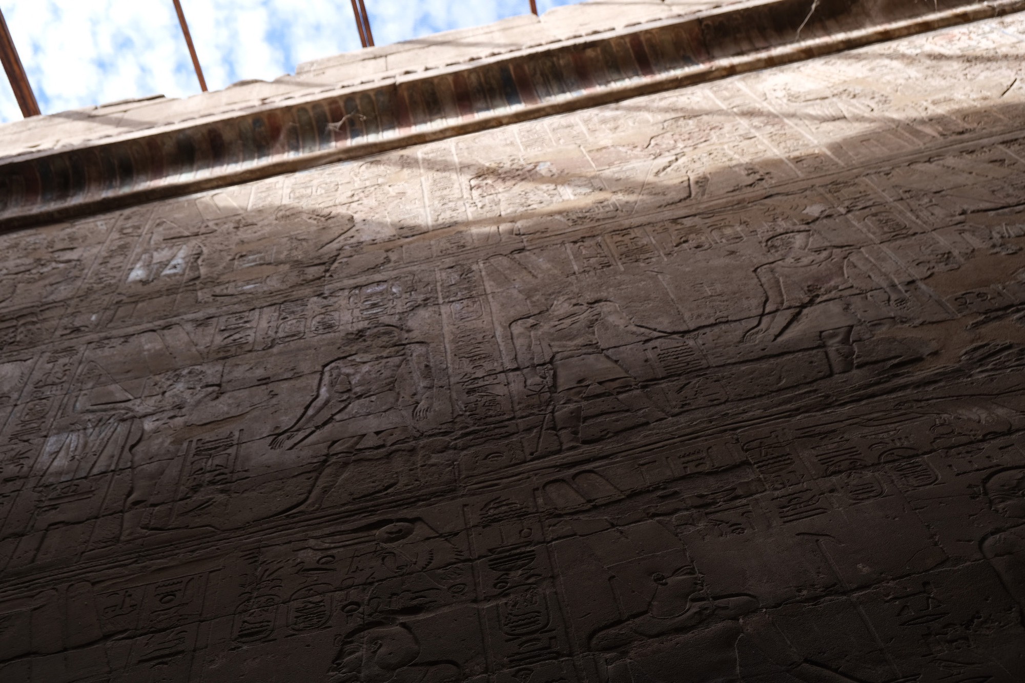 Photograph of the inner sanctuary at Luxor Temple with reliefs. Luke Hollis, 2021.
