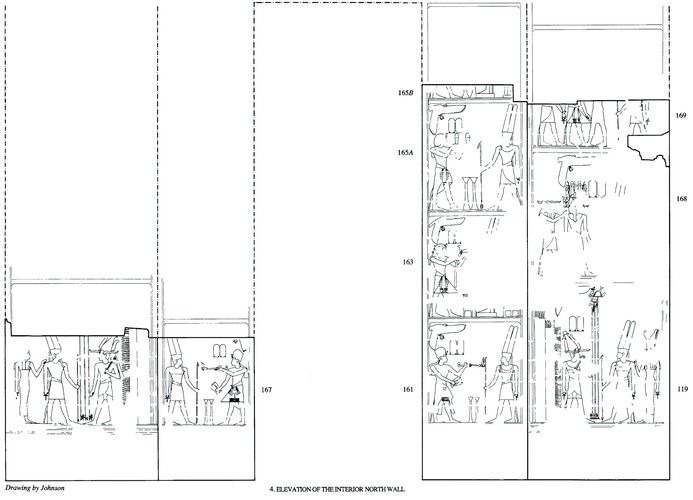 The great Colonnade Hall, with its festival scenes carved during and after the reign of Tutankhamun, was the primary focus of the Chicago House team throughout much of the 1980’s and 1990’s, resulting in the publication of Reliefs and Inscriptions at Luxor Temple, Vols. I-II. Throughout the same period, we have undertaken the systematic cataloguing, conservation, and analysis of the more than 50,000 inscribed stone fragments, collected from all over the Theban region, which are now stored within the Luxor Temple precinct. From 1995, a project funded first by USAID Egypt and ARCE, and then by the World Monuments Fund, permitted proper storage platforms to be created for all of the fragmentary material, emergency conservation measures to be undertaken for the most threatened pieces, and made possible the creation of an on-site open-air museum.