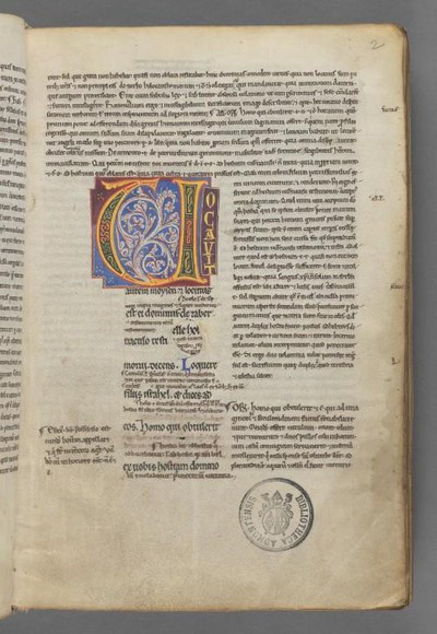 This moral life required guidance and education. To serve this goal, a number of didactic tools developed that were designed to help students find their way. The twelfth century saw a massive increase in the number of texts being transcribed with marginal commentary, necessitating innovative and increasingly complex design and layout of text and illustration on the page. Readers needed to be able to navigate the text and accompanying commentary and to find their place upon returning to the book. A twelfth-century copy of Gilbert de la Porree’s Commentary on the Epistles of St. Paul (cat. no. 30), copied at Chartres during the author’s lifetime (1075-1154), incorporates many of the design innovations of this period. The large inhabited initials function not only as decorative elements but also serve to delineate sections of the text. The marginal commentary is written in a smaller script than the primary text, making the two easily distinguishable. The manuscript also includes a rare example of a volvelle (wheel) bookmark.