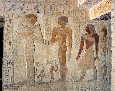 Photograph of Scribe Statue in the Tomb of Queen Meresankh III Photograph of a seated scribe on the south wall of the Tomb …
