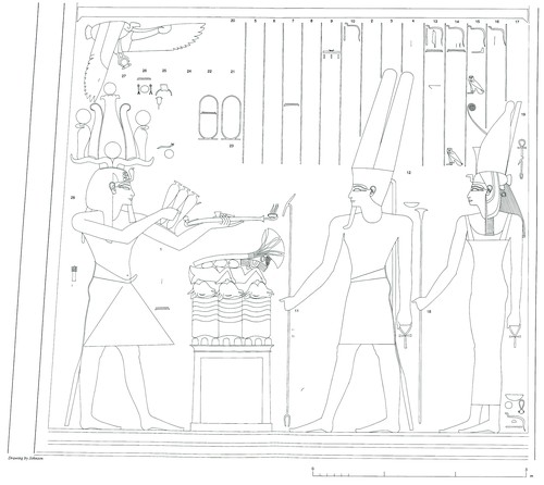 The King Thurifying and Pouring a Libation to Amun in the Presence … Facade, East Wall, First Register. See plate 130.