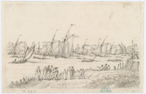Vauxhall Sailing Match, 1800 Depiction of the Vauxhall Cup in 1800, representing the yachts passing the …