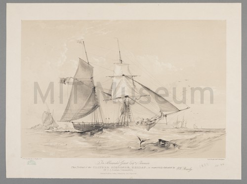 To Alexander Grant Esq. of Carnousie This Portrait of the Clipper Schooner, … Starboard view of the 'Hellas' sailing in the center of the image …