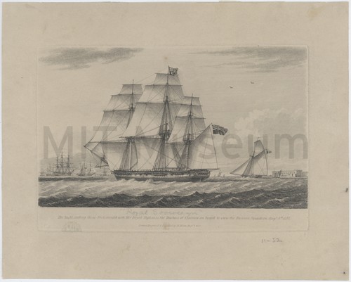The Yacht sailing from Portsmouth with Her Royal Highness the Dutchess of … Side view of the royal yacht, the "Royal Sovereign", as she sails …