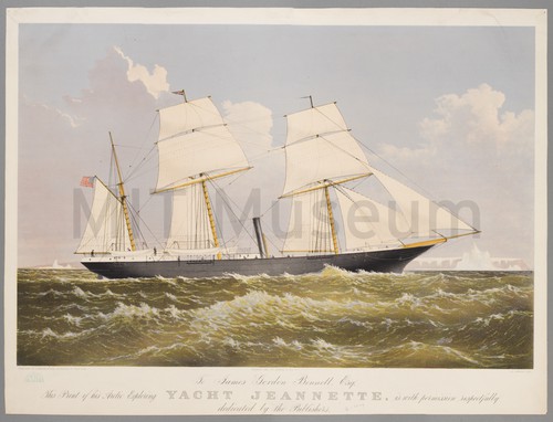 To James Gordon Bennett, Esq. This Print of his Arctic Exploring Yacht … A starboard-side view of the steam-powered yacht sailing near an iceberg in …