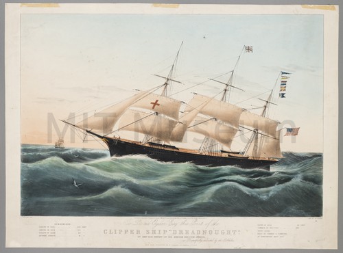To David Ogden Esq. this Print of the Clipper Ship "Dreadnought." A port-side view of the American clipper ship 'Dreadnought' off Sandy Hook …