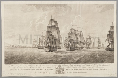 Veduta della Squadra di S.M. Britannica View of a British Squadron sailing close to the City and Port …