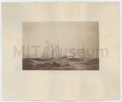 "America" from the original picture by Thos. Dutton. Photograph of a painting depicting the yacht "America" (namesake of the America's …
