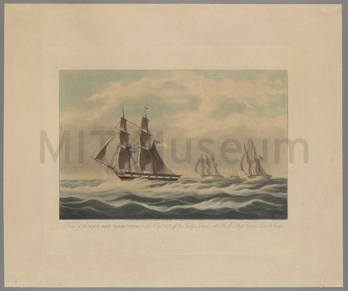 Trial of the R. Y. S. Brig Water Witch, on the 6th … A hand-colored lithograph of the RYS Brig 'Water Witch' and the HMS …