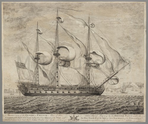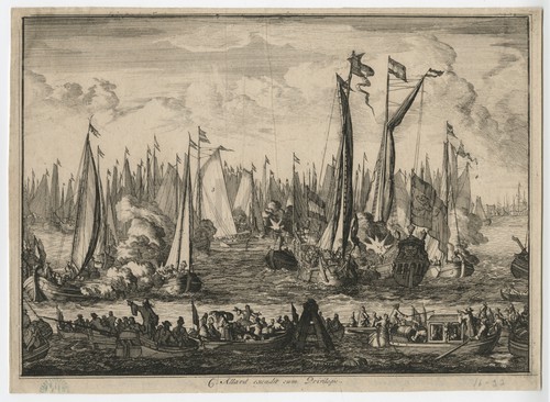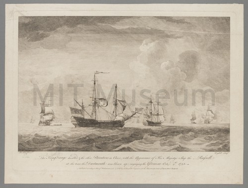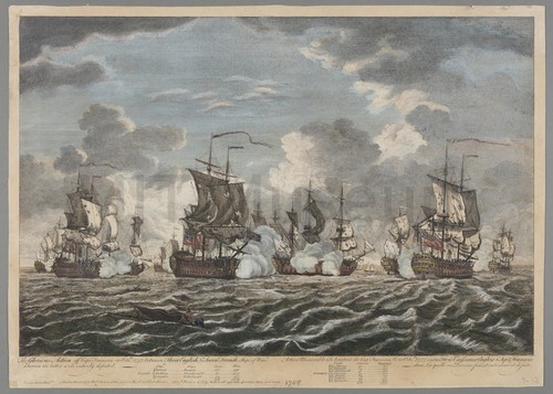 The King George Disabled An engraving depicting an event from a series of naval engagements between …