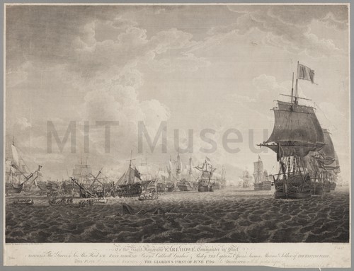 Saving the Crews of the Sinking Ships After the Battle of June … Engraving of a battle between the French and British Fleets during the …