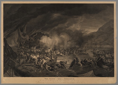 The Scene Before Gibraltar. On the Morning of the 14th of September … A chaotic scene of sailors in boats near burning ships and floating …