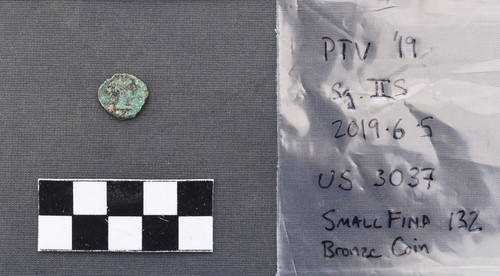 Trench A. Cast lead sling bullet. Complete. Uninscribed. Slight traces of casting …