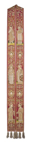 这件作品给人的印象是一件绘画而非刺绣艺术品。五彩丝线和金银丝将刺绣的美感展现得淋漓尽致。过去,在圣母节的游行和礼仪中,这件作品是圣母的徽章。如今,它被隆重地放置在装有圣人圣物的灵位上。